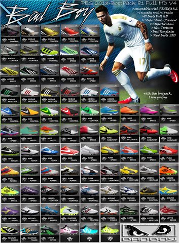 Приветствую тебя, дорогой посетитель нашего сайта. Рады приветствовать тебя в разделе Бутсы для PES 2013. Надеемся, что ты найдешь, то за чем зашел на нашу веб страничку. Мы стараемся радовать наших пользователей, с каждым разом все больше и больше, загружая все большее количество новых файлов, чтобы вы смогли найти новые патчи и Бутсы для PES 2013.