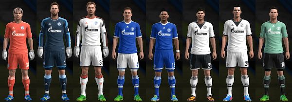 Kits Schalke 04 2013/14 UPDATE - полный набор форм немецкого футбольного клуба "Шальке 04", в который входят три варианта формы для полевых футболистов, и два варианта вратарской формы. Форма "Шальке" для PES 2013 сделана в GDB формате, что значительно облегчает установку.