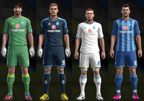 PES 2013 Dynamo Kiev 2013/14 Kits - форма самого титулованого клуба Украины - киевского "Динамо" на сезон 2013\2014 для футбольного симулятора PES 2013. Стоит отметить, что в данном архиве присутствует новая выездная форма киевлян, которая была представлена публике только несколько дней назад. В комплект входят два варианта форм для полевых футболистов и для вратарей(домашняя и выездная)