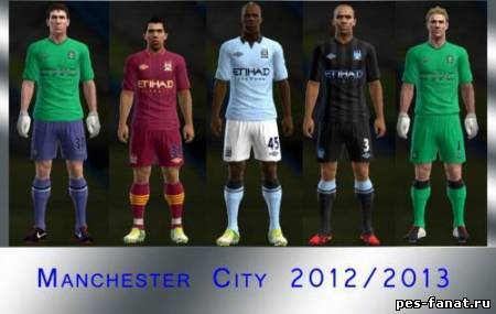Фарма для английского футбольного клуба "Манчестер Сити" на сезон 2012\2013. В паке присутсвует домашняя, гостевая и дополнительная формы, а так же вратарский вариант формы для PES 2013