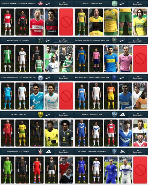 KIT KITCOLECCTION 2013/14 - большой и красивый пак, в котором собраны формы для нескольких клубов, выступающих в разных чемпионатах. В данном архиве все формы добавлены в полной комплектации, выездная, домашняя и дополнительная форма для полевых футболистов и домашняя и гостевая вратарская форма. Так же отметим, что формы сделаны в GDB формате, что облегчает вам установку форм