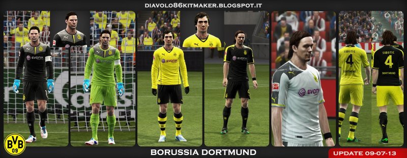 Представляем вам очередную версия формы для PES 2013. На этот раз то Borussia Dortmund GDB Kit 2013-14 - форма финалиста Лиги Чемпионов 2013, гранда немецкого и мирового футбола дортмундской "Борусии" на сезон 2013-2014 для футбольного симулятора PES 2013. Скачать форму "Боруссии" вы можете совершенно бесплатно, только у нас на сайте
