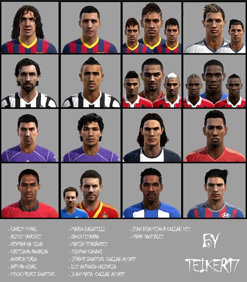 Приветствую тебя, дорогой посетитель нашего сайта. Рады приветствовать тебя в разделе Лица для PES 2013. Надеемся, что ты найдешь, то за чем зашел на нашу веб страничку. Мы стараемся радовать наших пользователей, с каждым разом все больше и больше, загружая все большее количество новых файлов, чтобы вы смогли найти новые патчи и Лица для PES 2013.