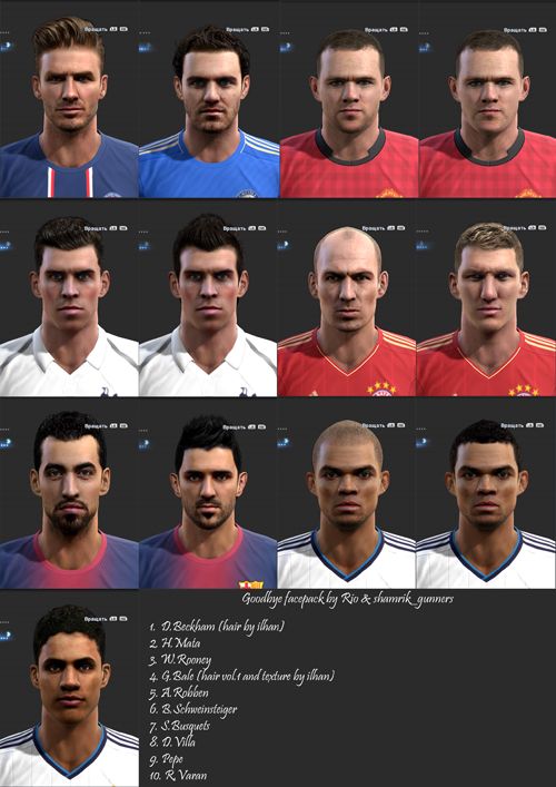 Internacional face pack for PES 2013 - именно то, что вы искали. Это небольшое дополнения для PES 2013, в котором собрано несколько лиц футболистов в супер отличном качестве, что позволит геймерам насладится игровой графикой в PES 2013, а так же почувствовать намного больше реальности, чем при использовании стандартных лиц от разработчиков игры