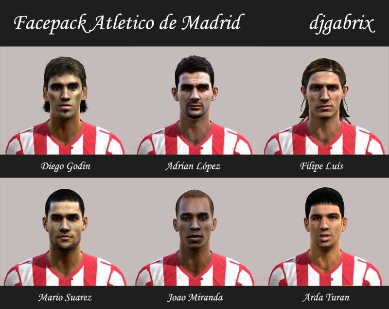 PES 2013 Facepack Atletico de Madrid - прекрасный тематический фейспак, в котором собраны лица некоторых футболистов, представляющих футбольный клуб "Атлетико" Мадрид. Все лица собраны в facepack'е сделаны в HD качестве, что придает им намного больше реальности