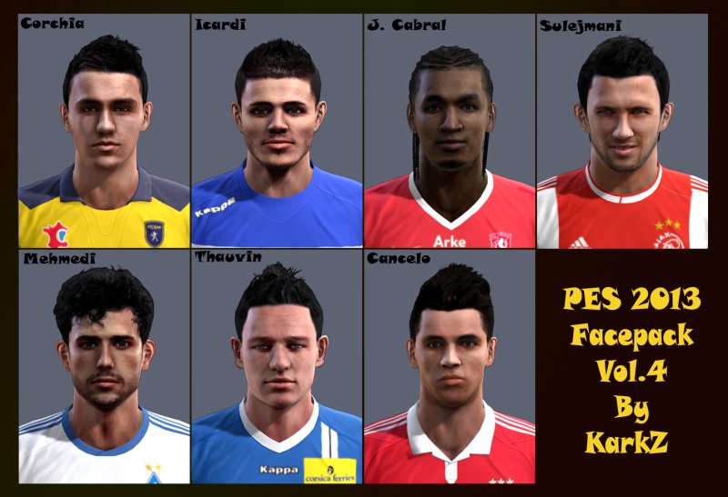 PES 2013 Facepack v4 - небольшой фейспак, который добавит несколько хороших лиц футболистов для футбольного симулятора PES 2013. Все лица сделаны в HD качестве и имеют свои(уникальные) прически. что делает фейсы в игре более похожи на реальные лица