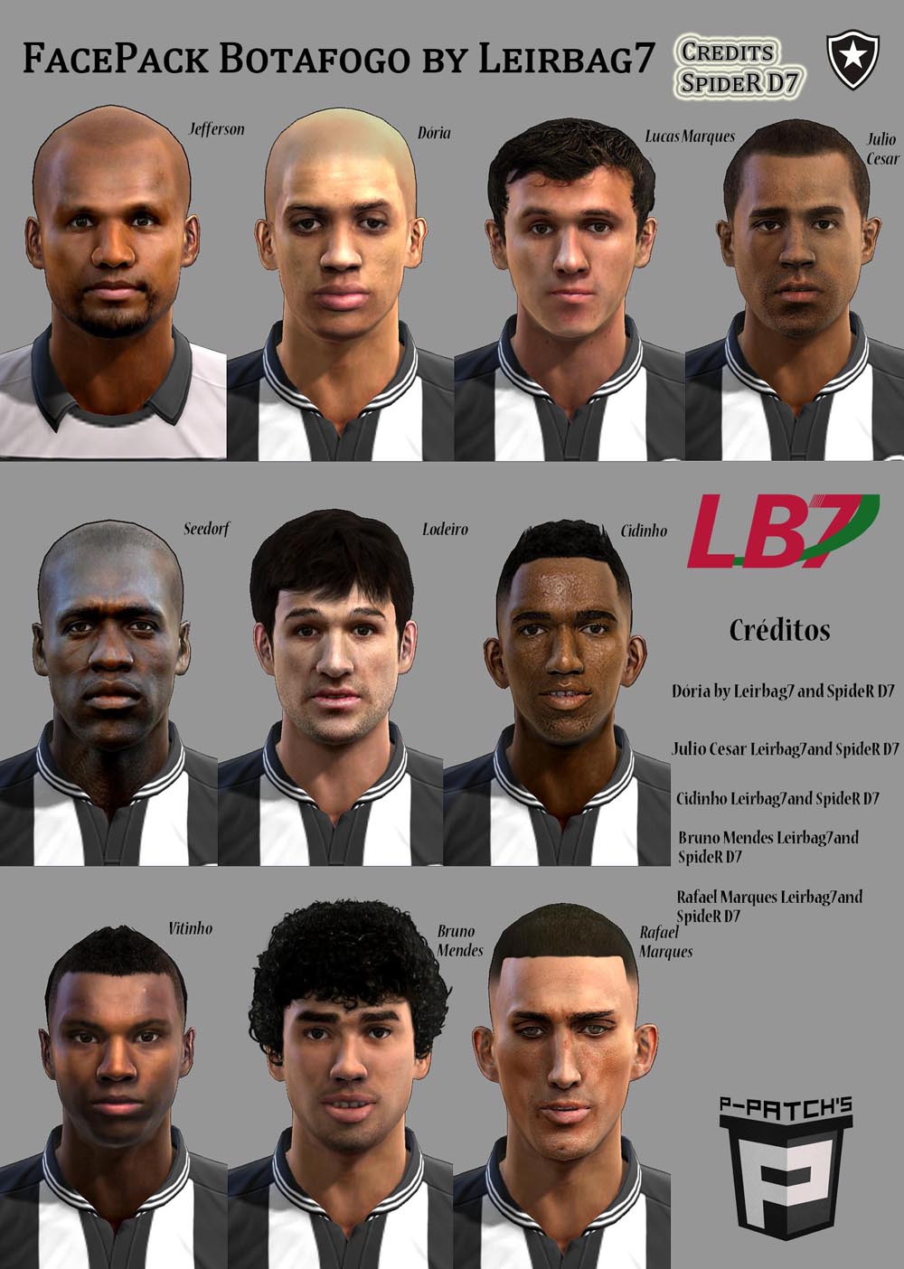 FacePack Botafogo for PES 2013 - очередная, отличная тематическая версия фейспака, в котором на этот раз представлены лица лидеров бразильского футбольного клуба "Ботафаго", в котором выступает легенда "Милана", голландец Кларенс Зеедорф