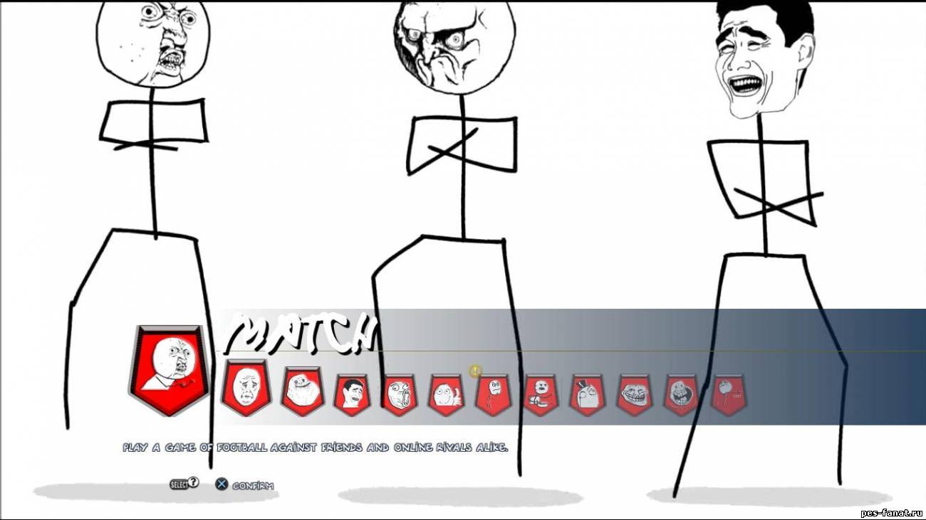 У вас есть интересный, новый файл, которого нет у нас на сайте и вы хотите нам помочь?! То просим вас зарегистрироваться, что не займет у вас более пары минут и добавить данный файл на наш сайт посвященный футбольному симулятору в раздел Меню для PES 2013