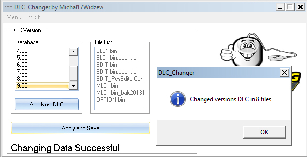 DLC Changer 1.0.1 - отличная утилита, которая поможет вам перестроить игру под новое официальное обновления от разработчиков футбольного симулятора PES 2013 DLC 4.0, а именно делает ваши сохраненки совместимыми с новым обновлениям, то есть вам не придется начинать заново любые турниры или карьеру