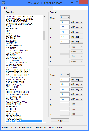 Представляем вашему вниманию PESBOX 2013 CHANT RELINKER V1.0 - уникальную программу, которая поможет вам присвоить кричалки для любимого футбольного клуба в PES 2013. Принцип работы данной программы похож на работу салектора, вы так же все сможете выбрать, но притом другая функция автоматически отключается