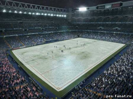 Обновление, которое добавит для стадиона мадридского "Реала" Santiago Bernabeu зимний, заснеженный газон, есть два варианта ганоза, когда снег лежит по всему газону, и когда его видно только за лицевой линией.